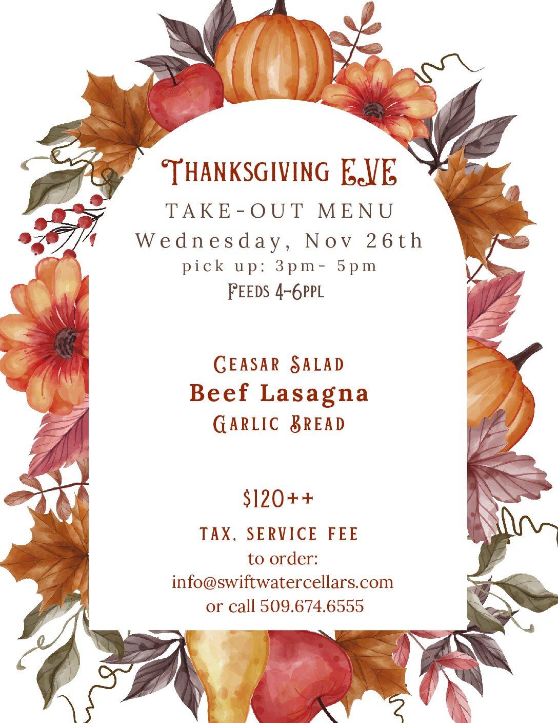 Pre-orders are encouraged as quantities are limited. Celebrate Thanksgiving Eve with a comforting, ready-to-enjoy meal from Swiftwater Cellars.