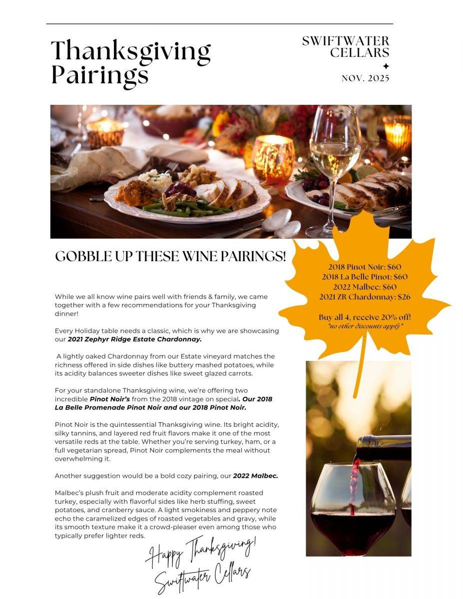 Wine and Thanksgiving are a perfect match! This season, explore a few thoughtful pairings designed to bring out the best in your holiday dishes. From classic favorites to new seasonal selections, there’s something for every palate and every table.