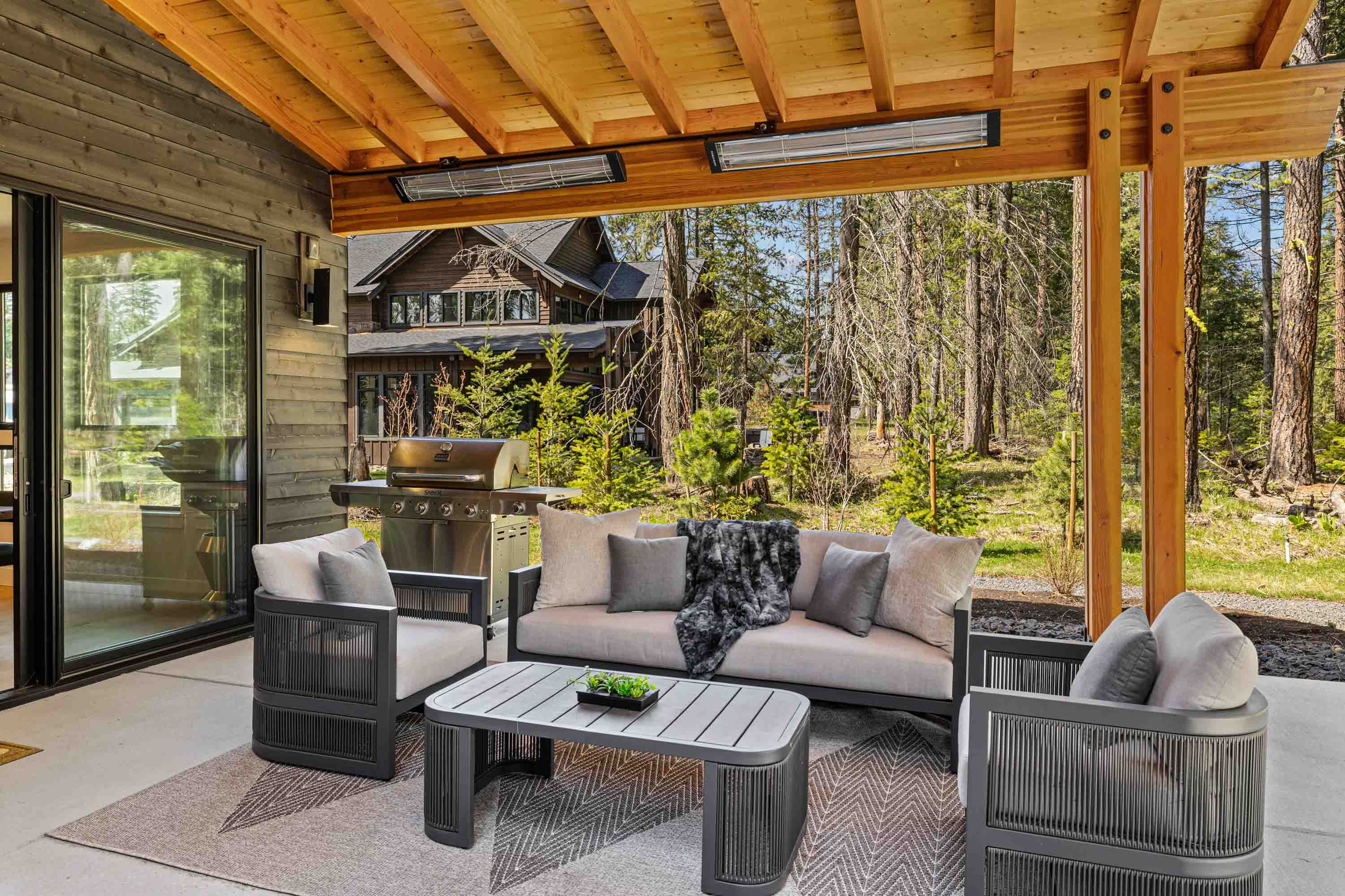 Infrared heaters overhead mean this covered patio gets used long after the sun goes down