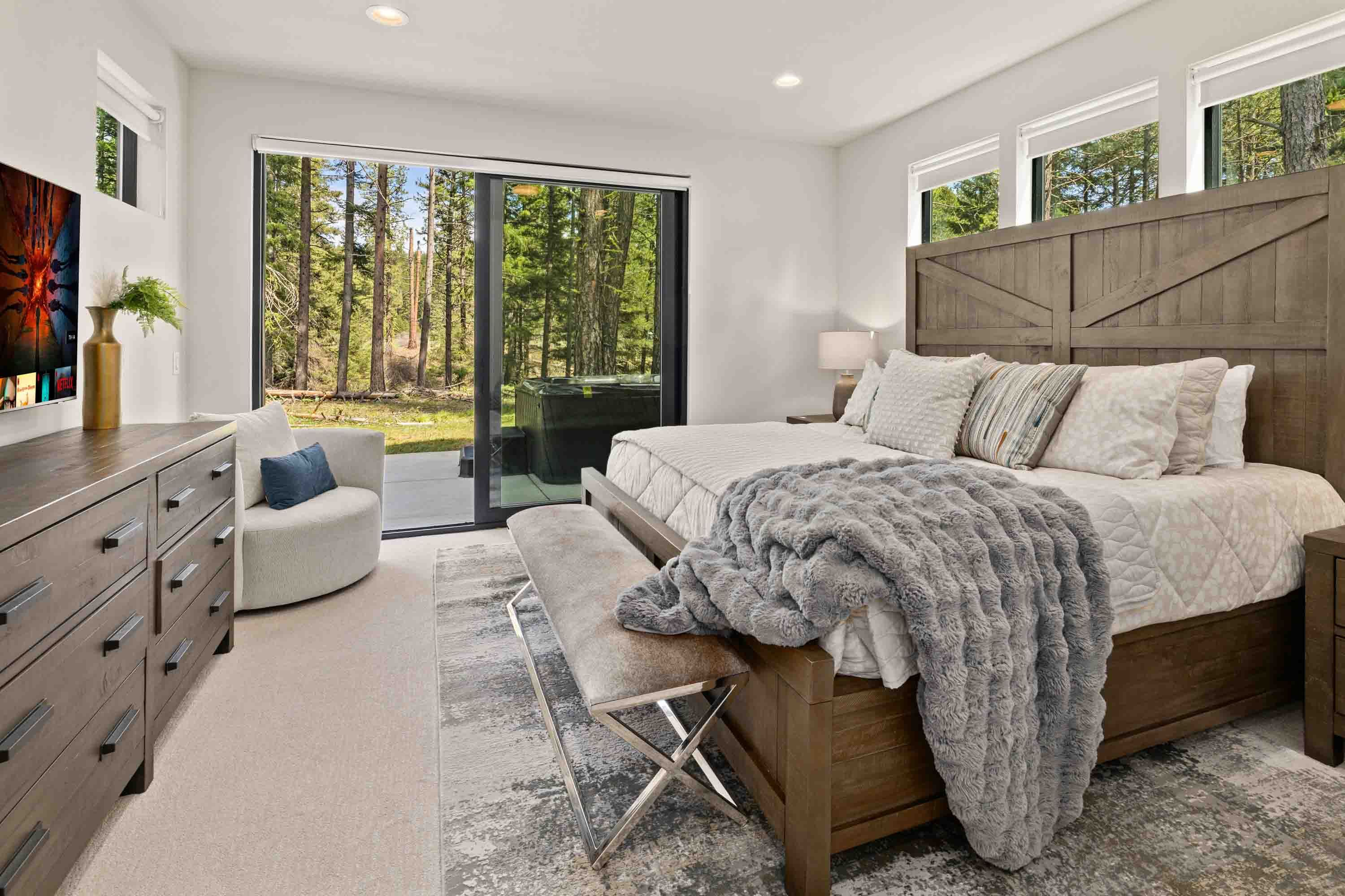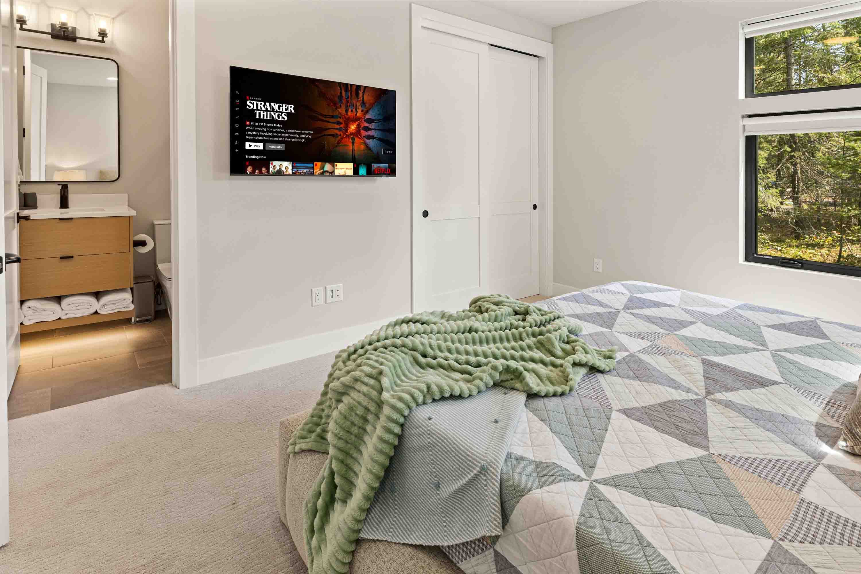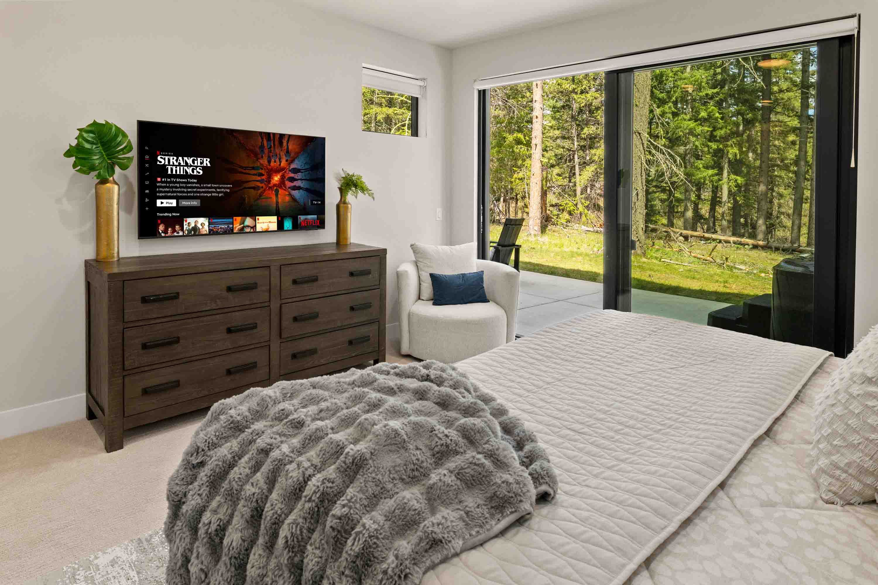 Lower Floor BR1 — King master suite with en suite & TV that opens out to the hot tub