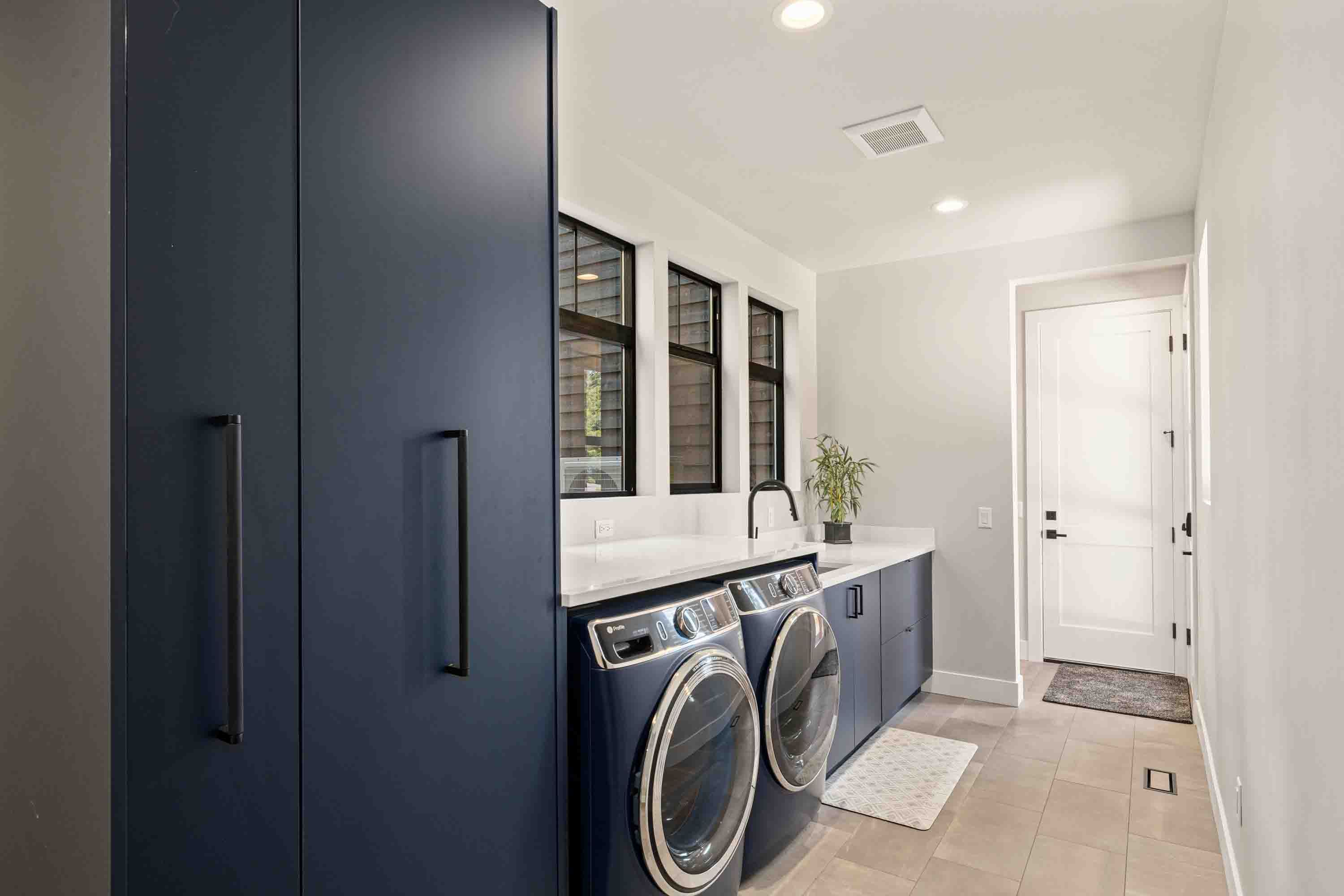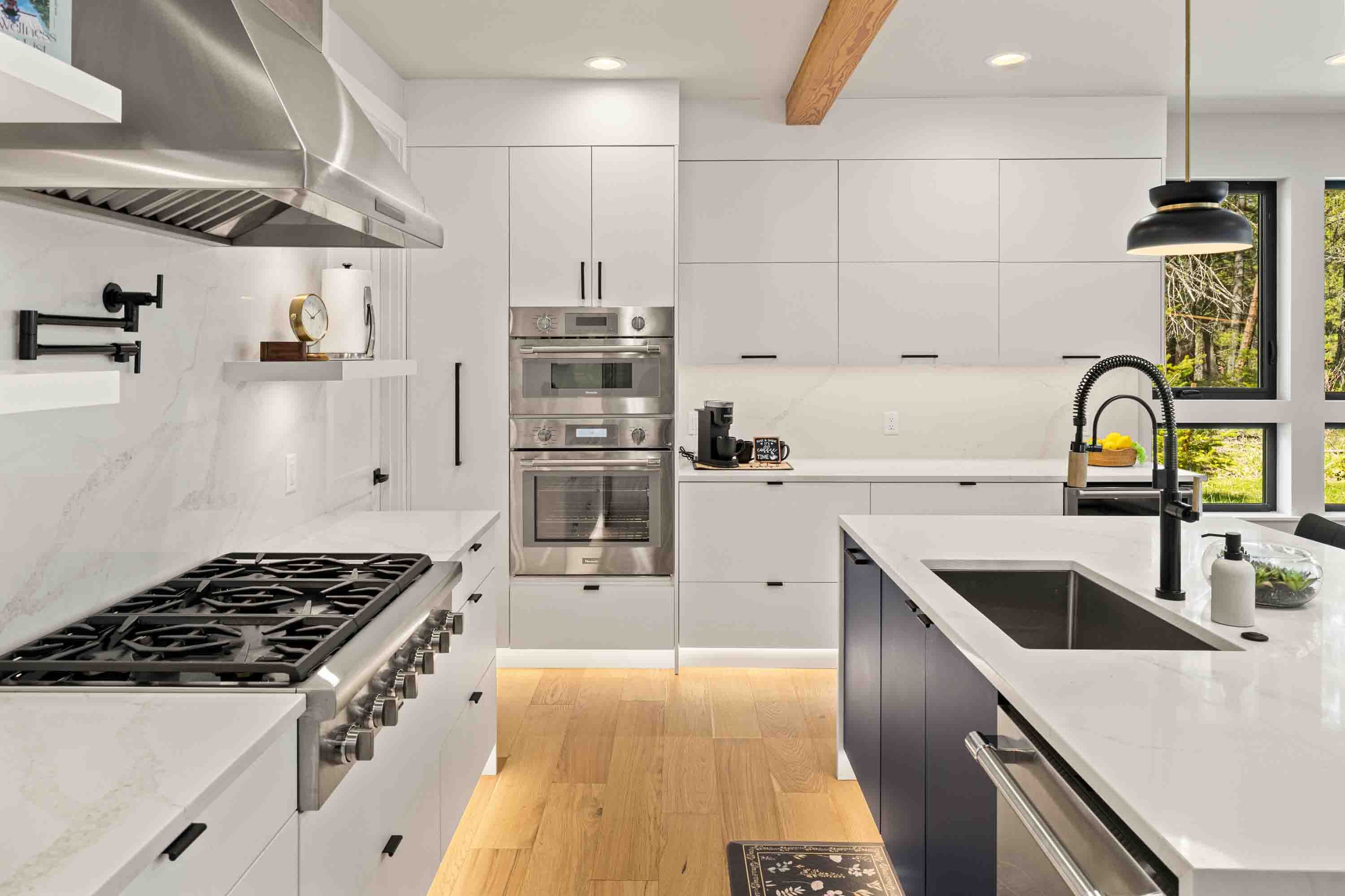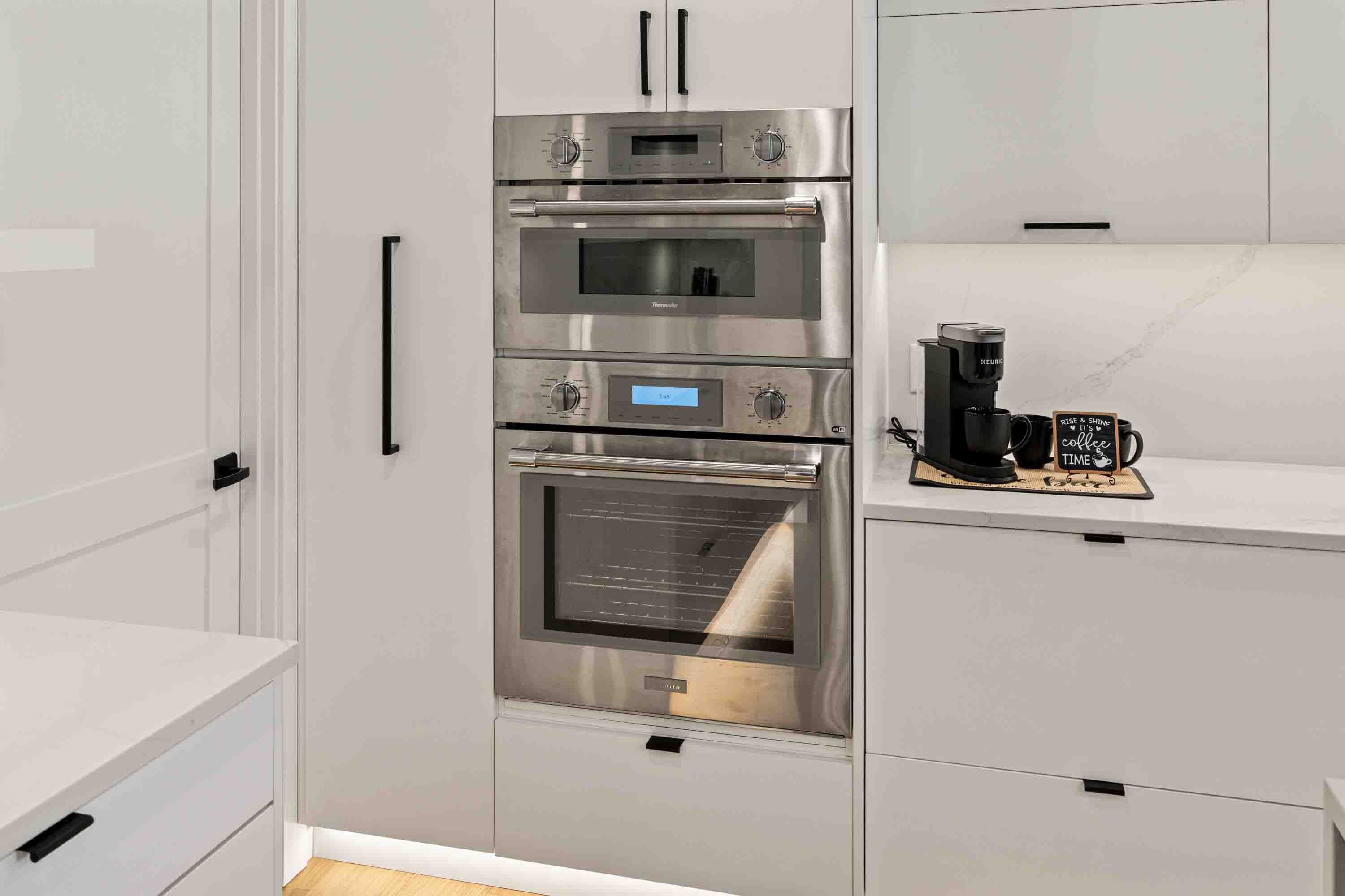The double Thermador ovens mean two dishes at once, and the gas range means dinner happens fast