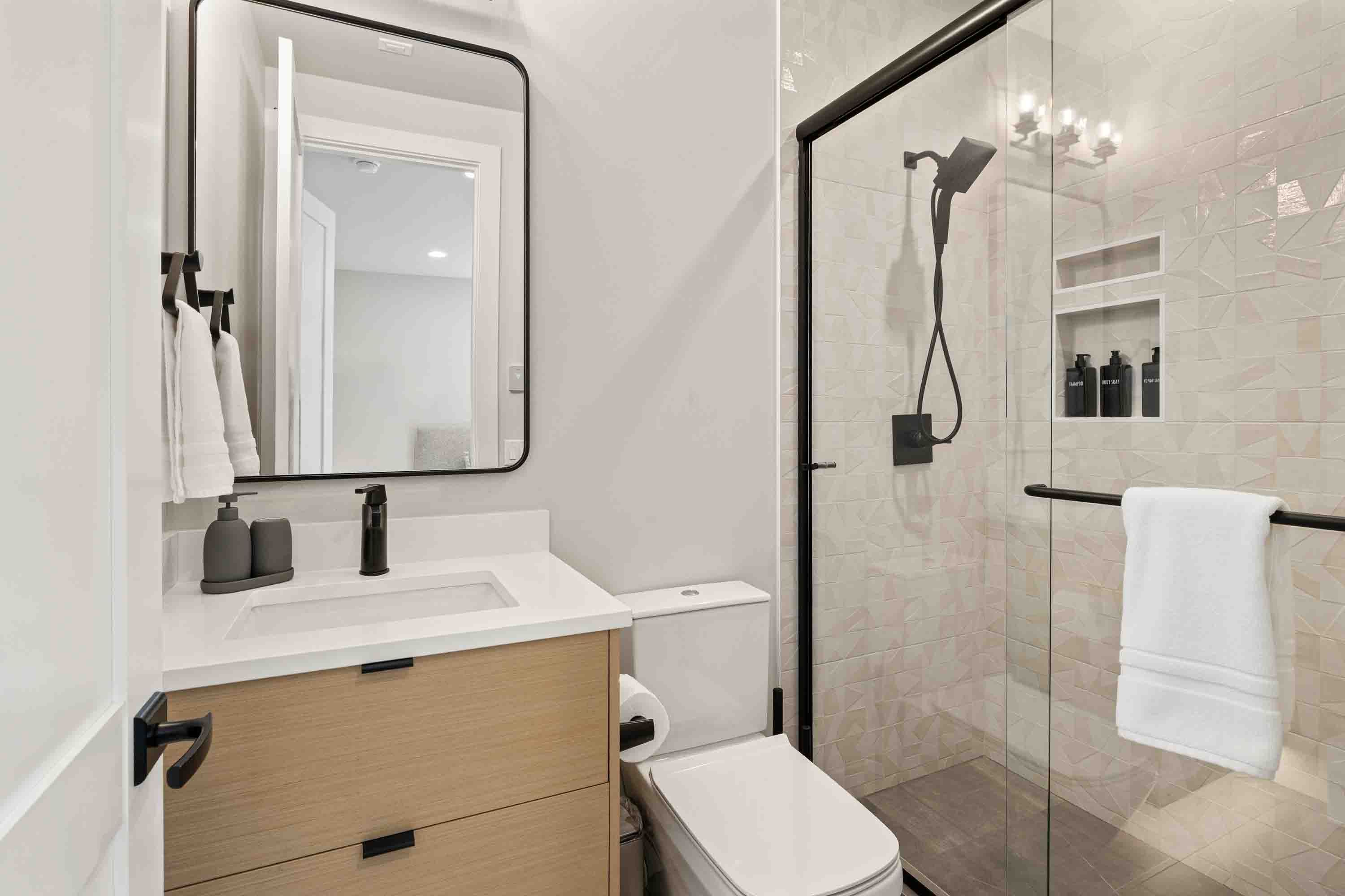 Upper Floor ADU En Suite — single vanity, walk-in glass shower