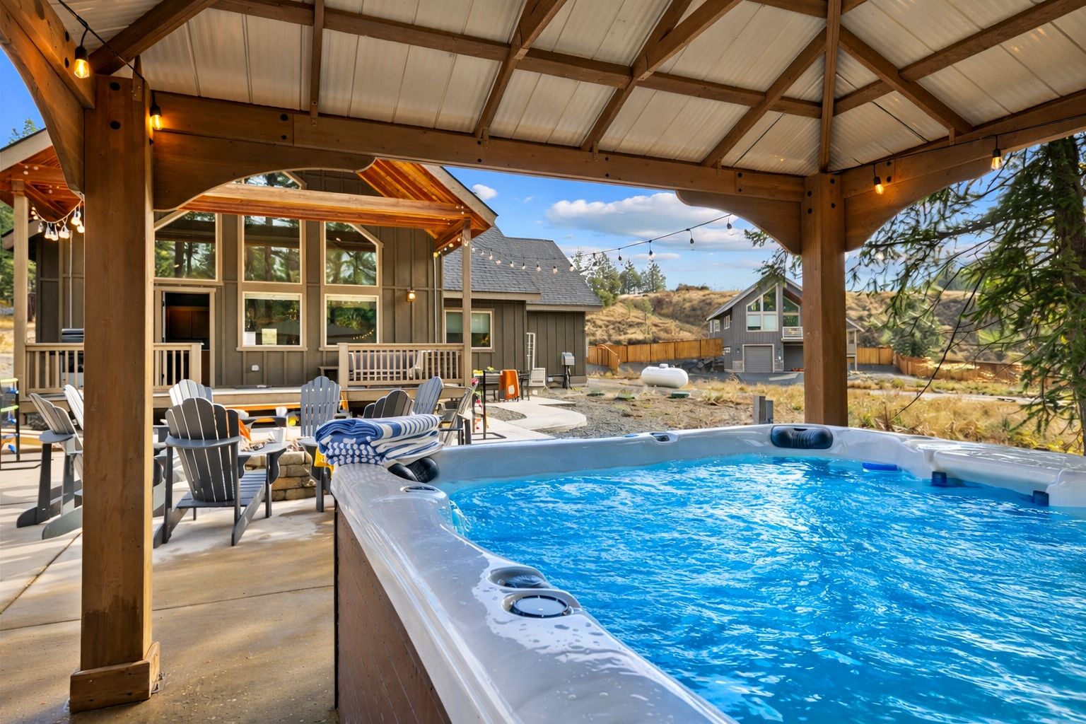 Covered private hot tub — soak year-round in the Roslyn Ridge pines