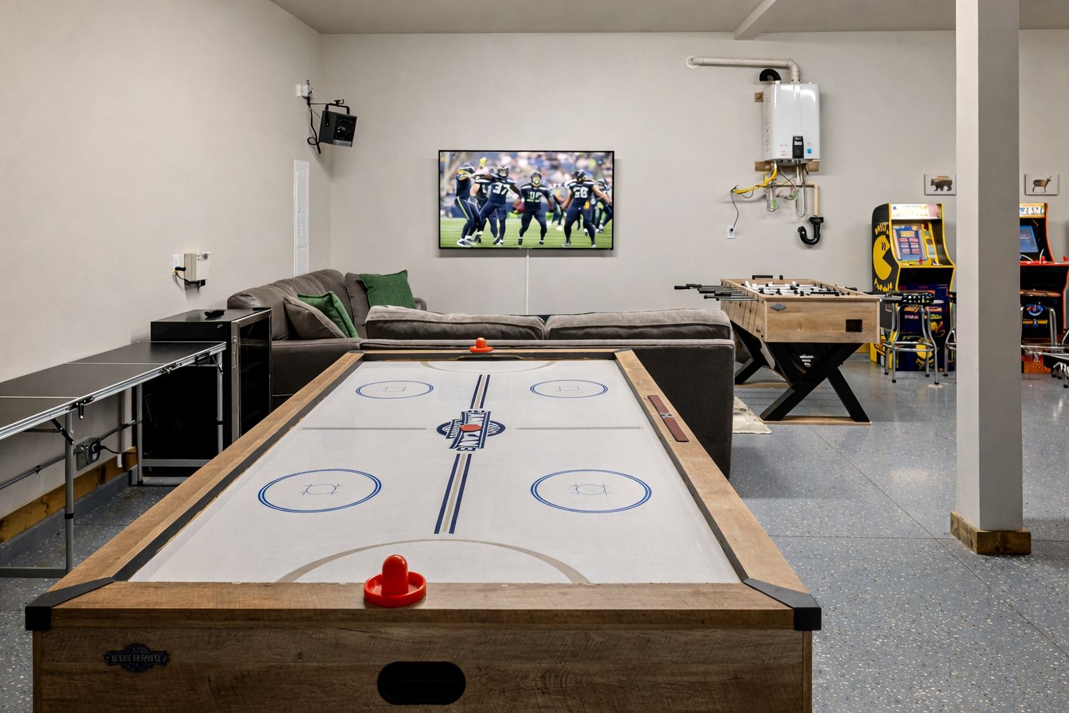 Heated game room — Pac-Man arcade, ping pong, air hockey & foosball