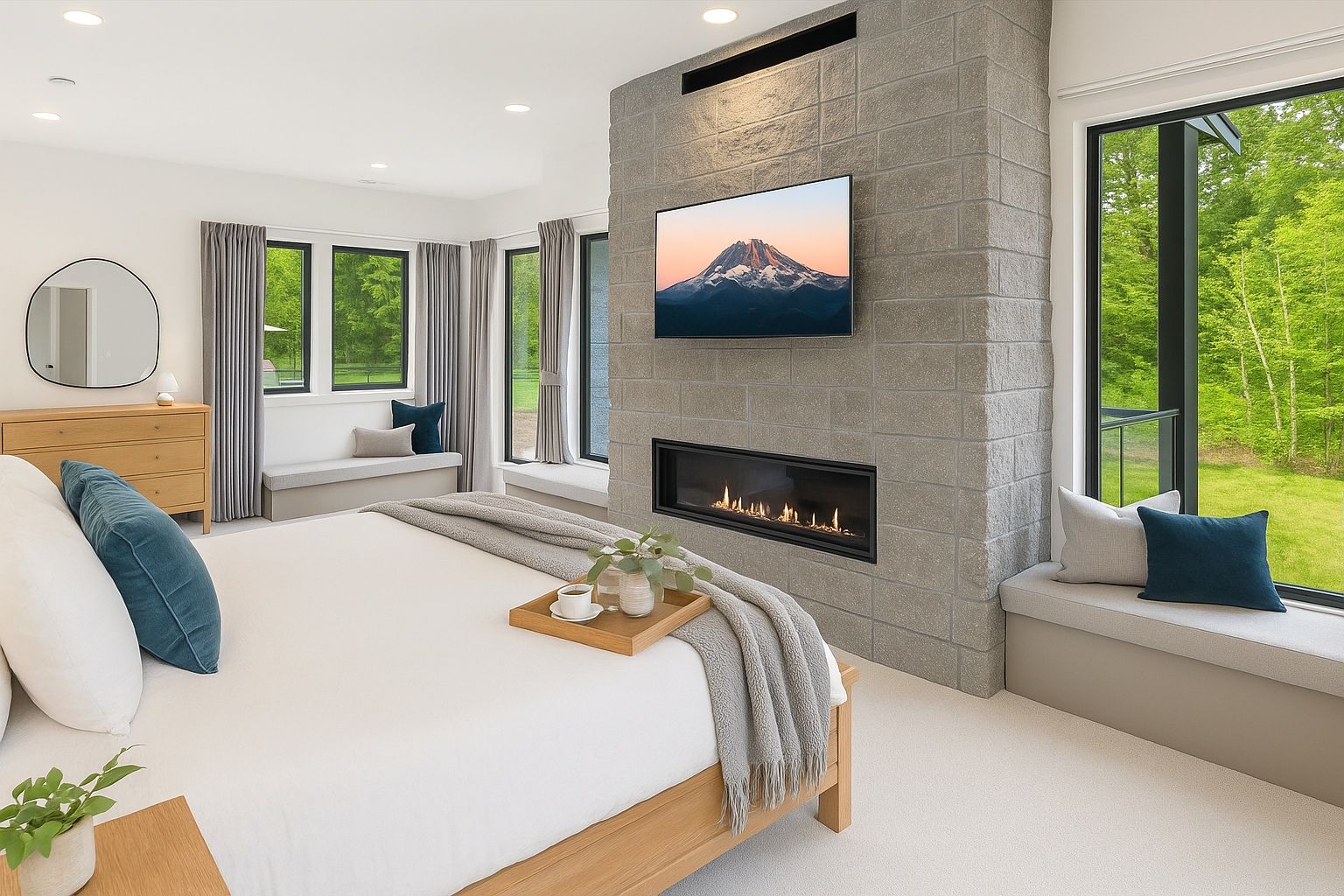 * Bedroom 1 - King master suite, gas fireplace, soaking tub, steam shower + bidet toilet