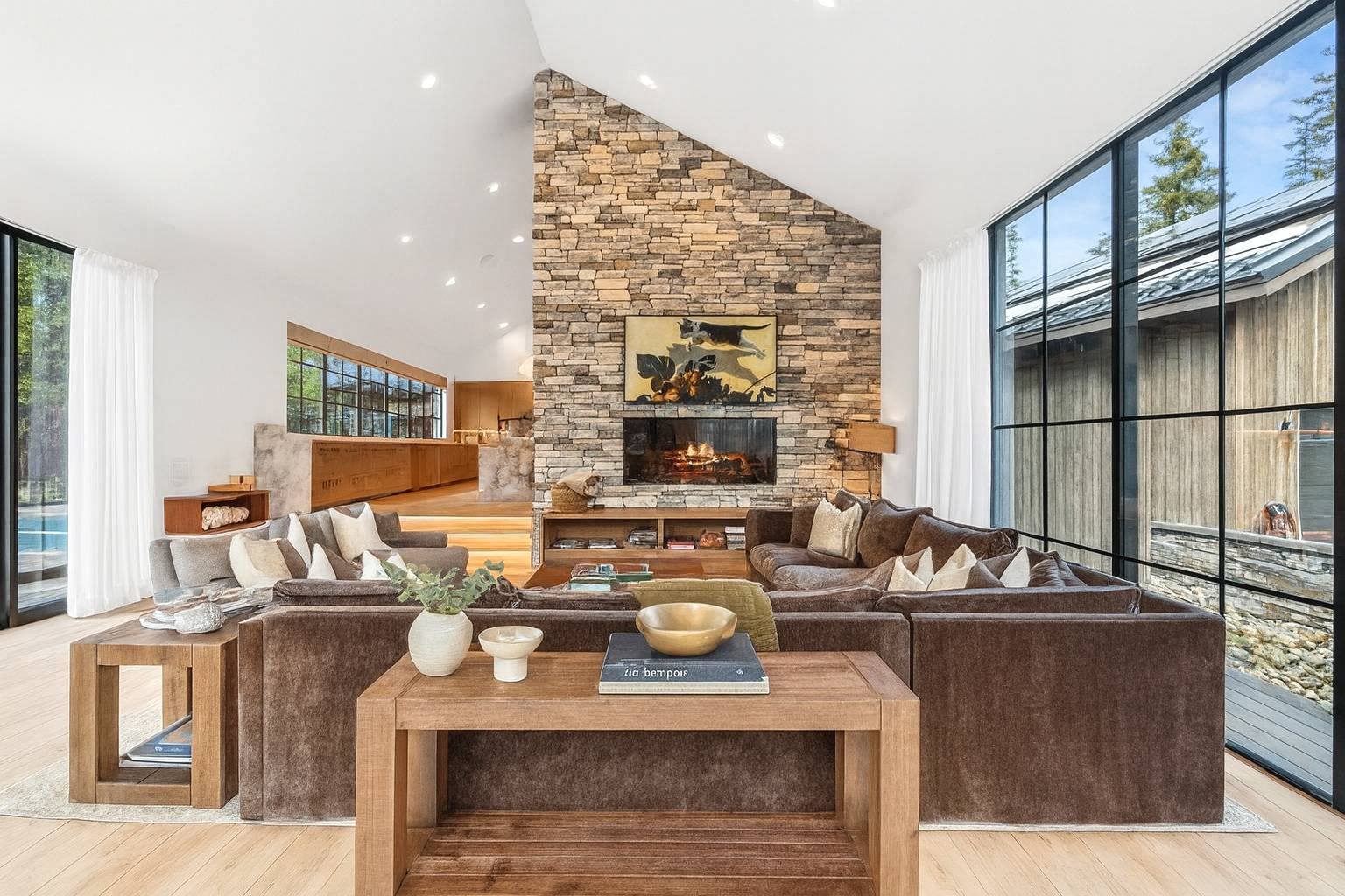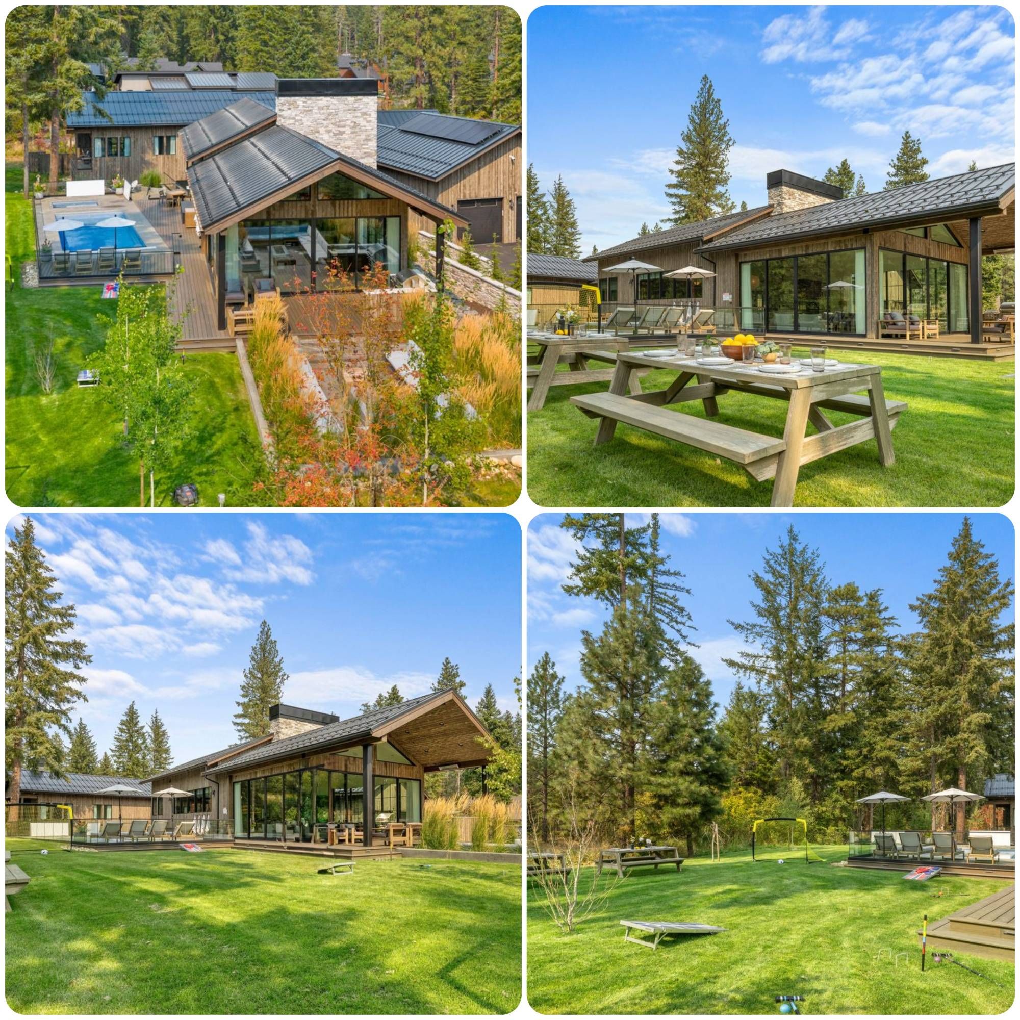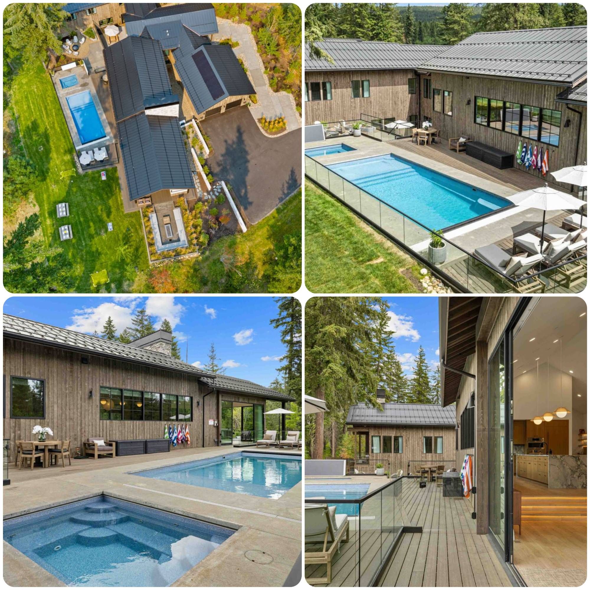 A dramatic modern lodge unfolds into multiple wings of luxury living, surrounded by evergreens and open air serenity.Golf sim anchors game room with ping pong, Pop-A-Shot, EVs, and strollersExpansive chef’s kitchen and dining room with waterfall islands, and panoramic nature-facing windows.Fully fenced resort-style salt water pool, spa, sunken firepit & luxe loungers for relaxingSpacious outdoor seating with a gas fire table - cushions set out April - OctoberPoolside luxury crafted for relaxed, sun-soaked momentsSunken seating area with a gas fire pit and a built-in outdoor kitchen.One of four EV charging stations available for guest use.Thoughtfully stocked for families - two convenient strollers ready for effortless outingsMaster suite with views of resort-style pool, spa & private outdoor oasisScandinavian firepit lounge with artisan stone, modern design & perfect for morning coffeeLower Lounge features a 36" Teppanyaki grill Glass-lined great room flows to poolside deck, blending fireside warmth with outdoor luxuryGlass walls surround plush seating with access to outdoor firepit sanctuaryGlass-lined living room with stone fireplace opens to poolside loungers and lush greeneryLower Level Entertainment lounge with fireplace, second kitchen, dishwasher, two polycade arcadesOne of two Polycade arcades, offering hundreds of old-school favoritesLower Level Media lounge with 85” TV & Nakamichi Dragon sound for immersive cinematic nightsLower-level retreat with oversized sectional, arcade vibes & sleek second kitchenBedroom 8 or Movie lounge with a premium auto-inflate airbed for seamless guest setupXbox Series S set up in Bedroom 9 for effortless gaming and downtimeExpansive center island with striking quartz waterfall countertops, ideal for entertainingBright, open-concept kitchen and dining area featuring minimalist lighting and seamless indoor-outdoor flow.Dining table seats ten, with an additional eight at the center island.Professional-grade kitchen with Wolf appliances, dual ovens, six gas burners, and a convection microwaveLuxury bar with underlit cabinetry, dual beverage fridges, and a dedicated bar ice machineCoffee and breakfast bar in the second kitchen for effortless morning convenienceSecond kitchen with a coffee and breakfast bar, refrigerator, and seating for eight.Main-floor half bath with a separate, private toilet room for added comfortLower-level third kitchen with an island bar for effortless entertainingCoffee bar with a beverage refrigerator and built-in dishwasher for effortless convenienceCoffee bar with a beverage refrigerator and built-in dishwasher for effortless convenience.Master suite patio with overhead heat lamp for cozy, all-season loungingSoaking tub framed by light, paired with floating vanity & curated designer touchesFrameless glass steam shower with stone accents & soft, spa-inspired lightingFloating double vanity with quartz counters, open shelving & matte black fixturesEn suite bath with walk-in glass shower, TOTO bidet & sculptural backlit mirrorFull bath shared by Beds 3 & 4 featuring tub/shower, heated floors & dual sinksEn suite bath with walk-in glass shower, TOTO bidet & sculptural backlit mirror(Lower Level) Bathroom Tub/Shower bathroom with double sinks heated floorsBedroom 9: Bunk room with 4 queens + 4 twins, perfect for groups or families (sleeps 12)Bedroom 9: Bunk room with 4 queens + 4 twins, perfect for groups or families (sleeps 12)Fully fenced resort-style salt water pool, spa, sunken firepit & luxe loungers for relaxing