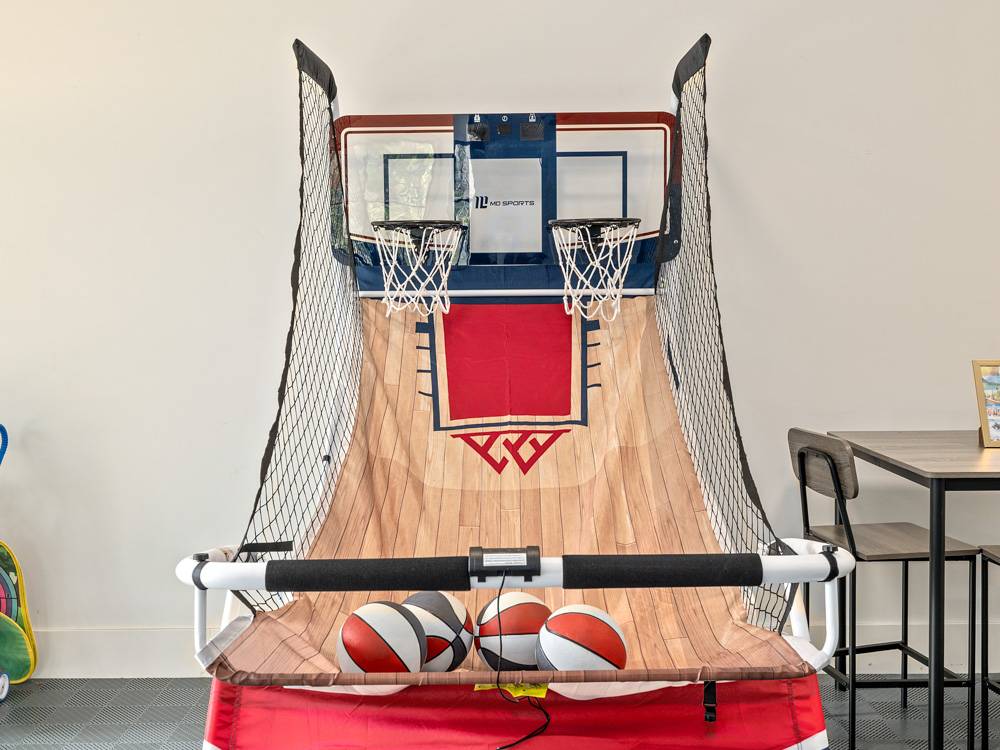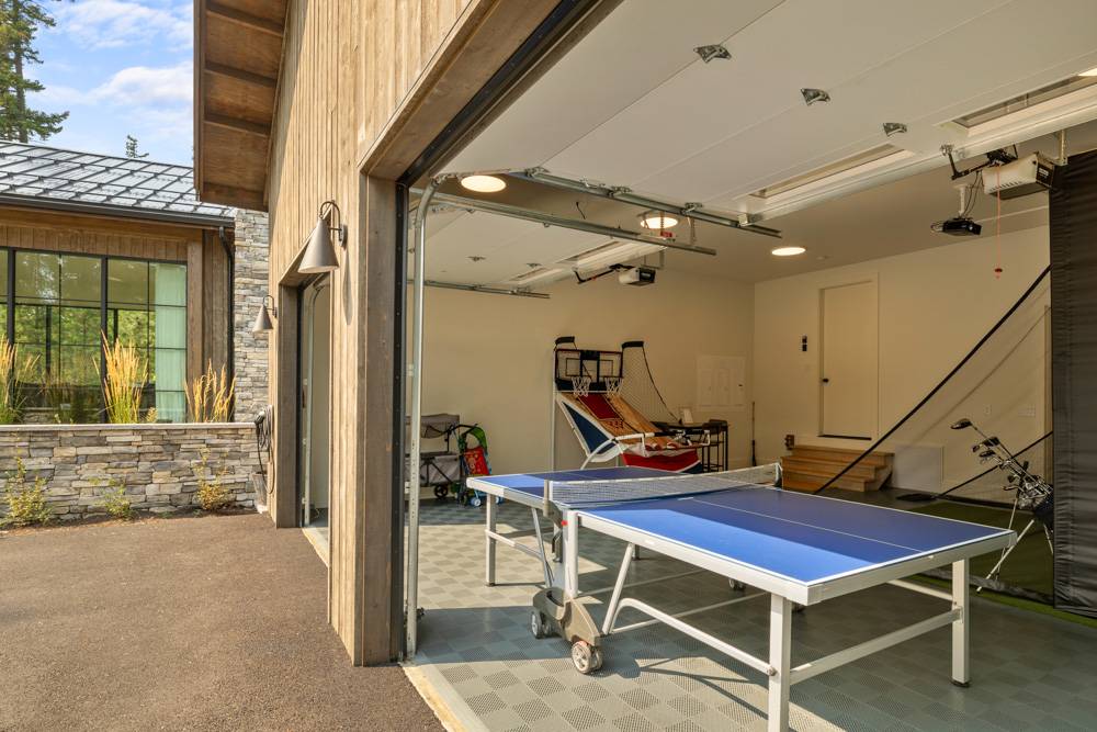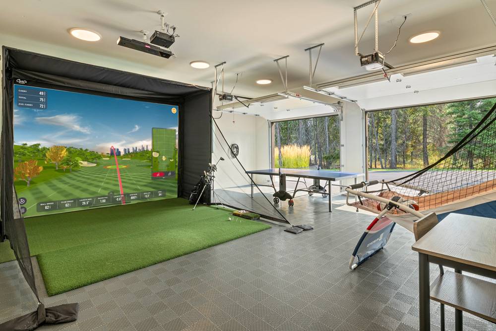 * Heated game room with full golf simulator, ping pong table, and Pop-A-Shot