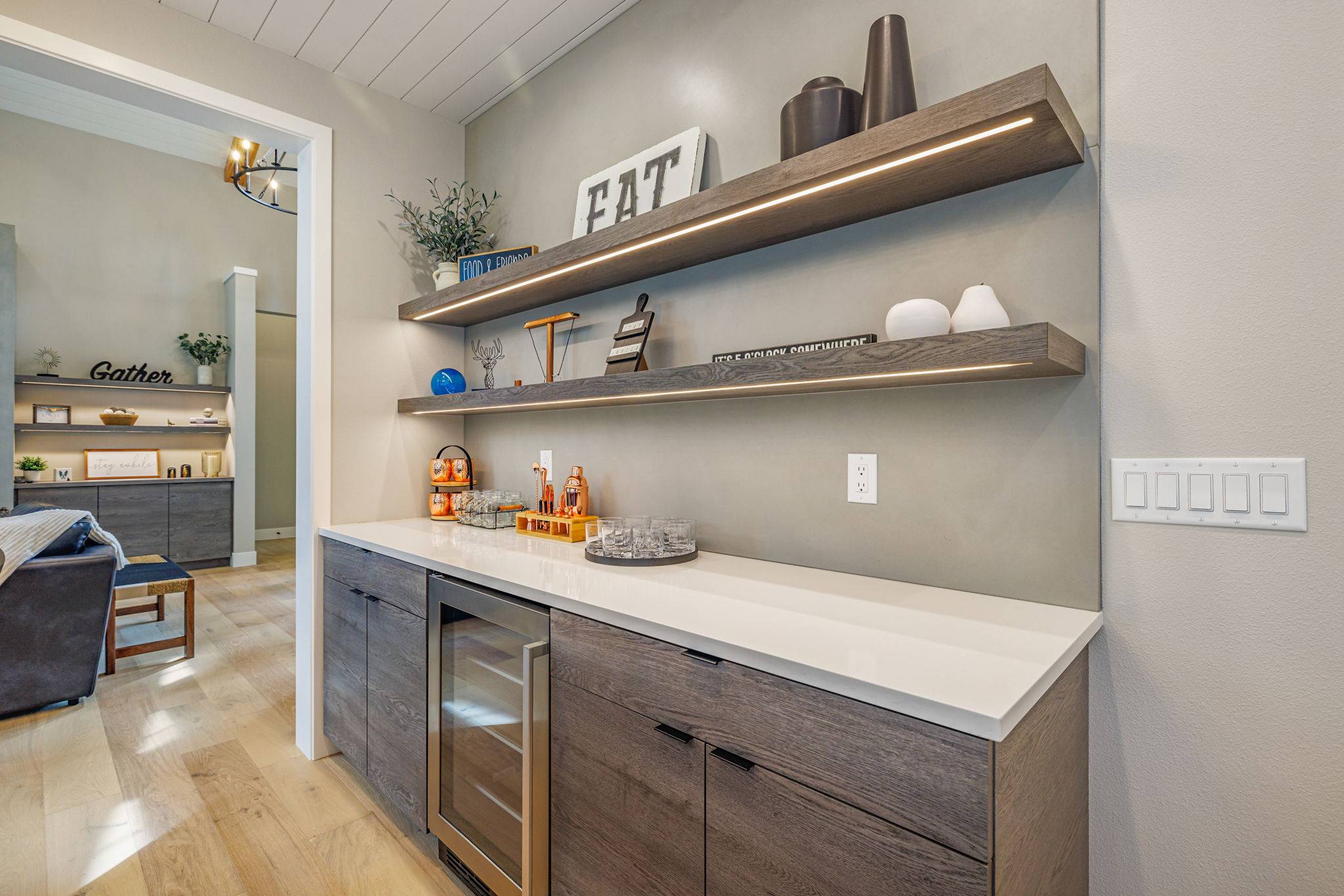 Full Laundry Room Featuring Overhead Cabinets And Hanging Rack