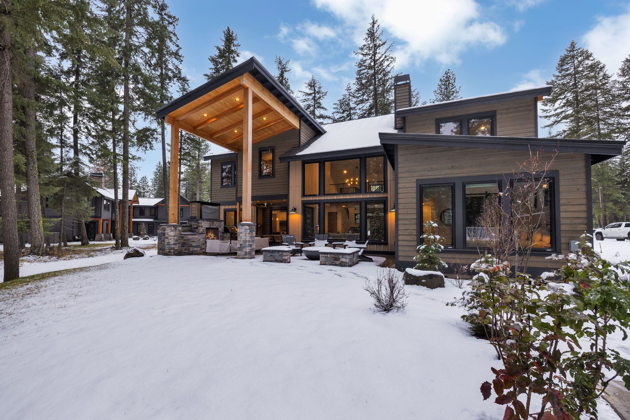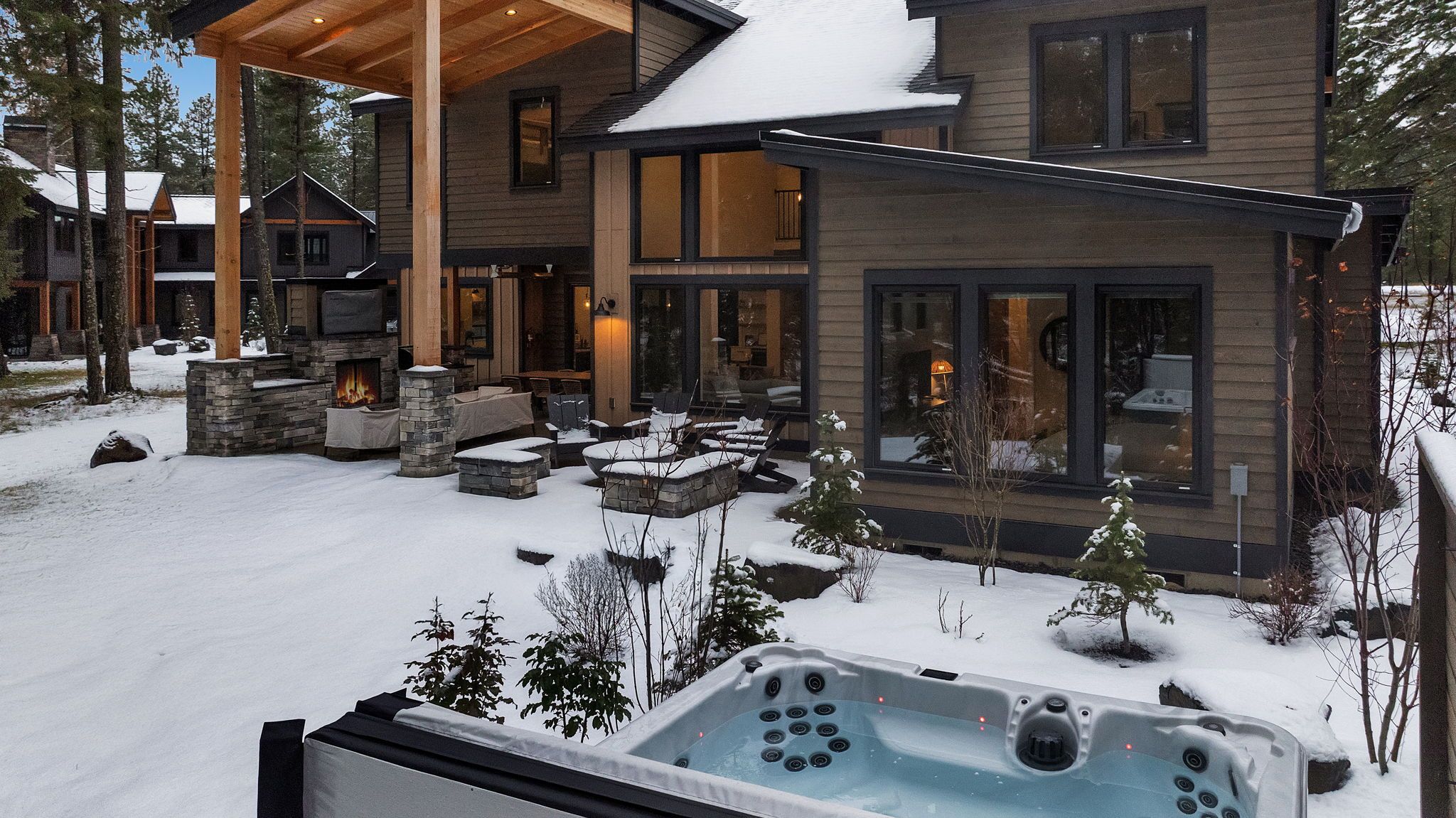 Outdoor Lounge – Covered Seating Area for Year-Round Comfort + Gas Fireplace