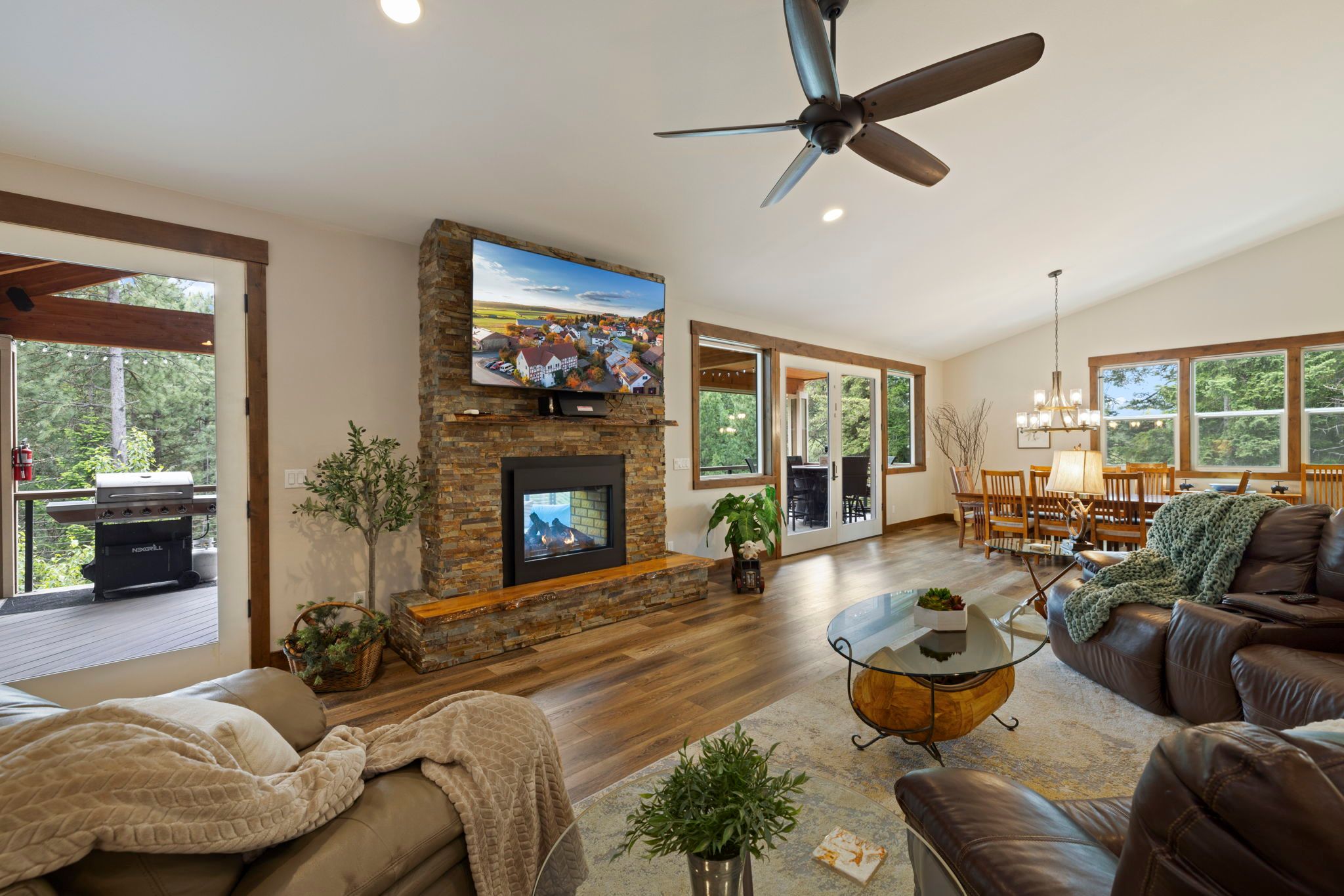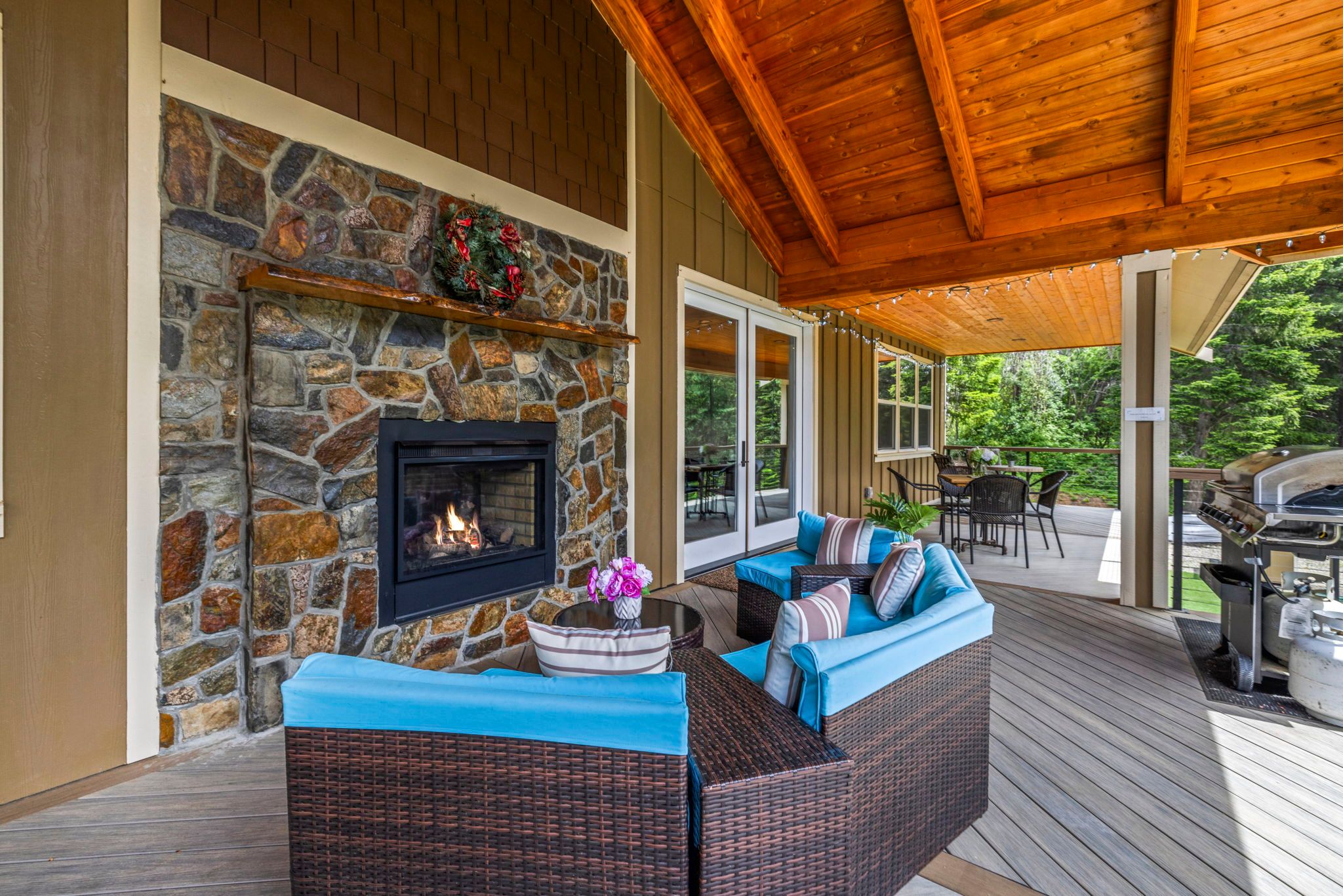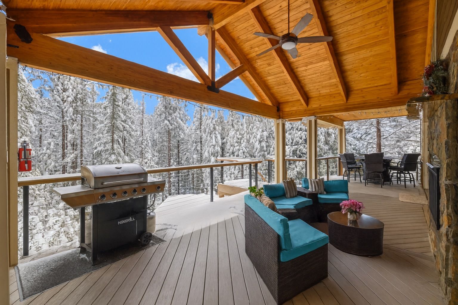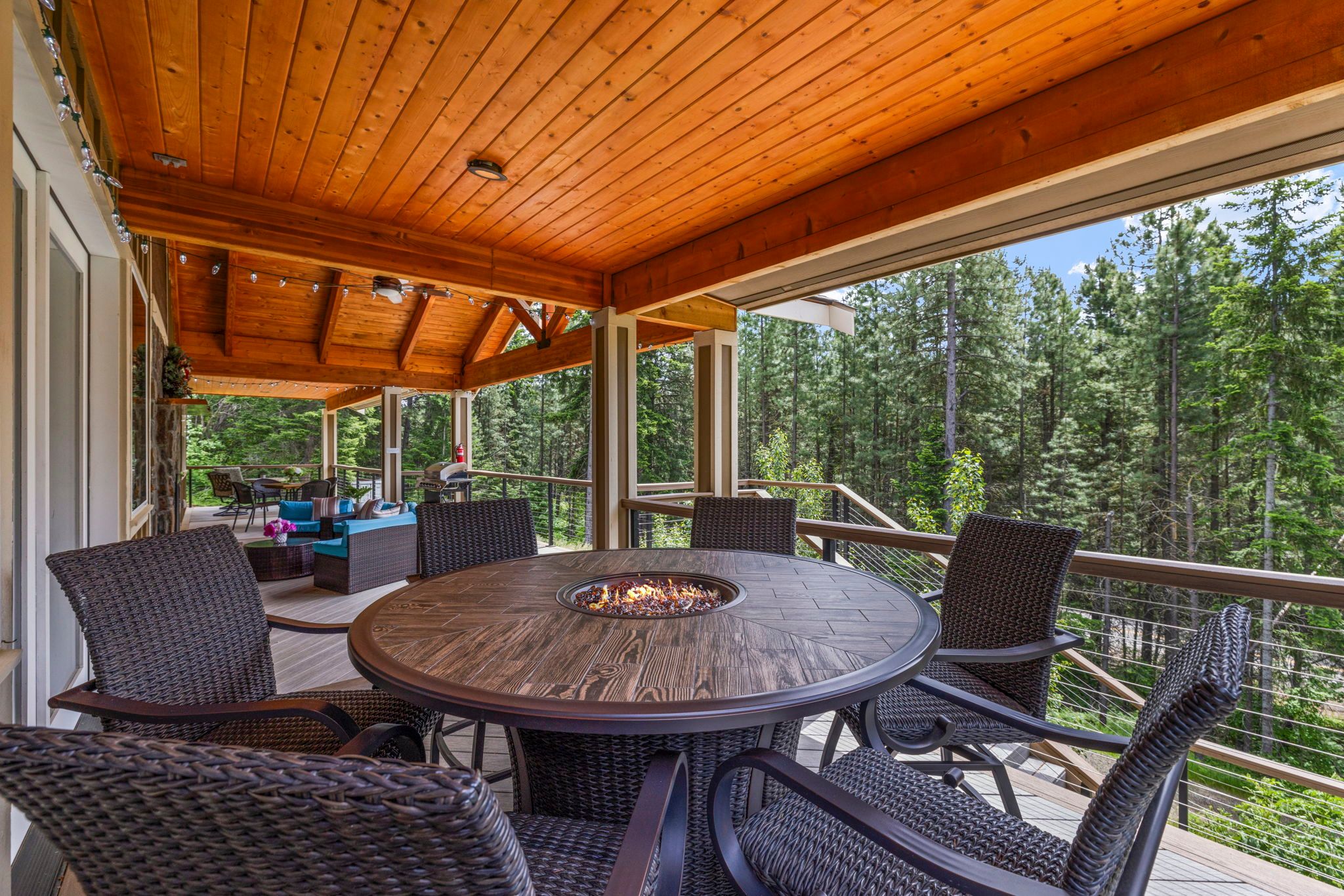 * Expansive Covered Deck, Amazing Views, Gas Fireplace, Sectional Couch, Fire Table w/ Seating for 6.