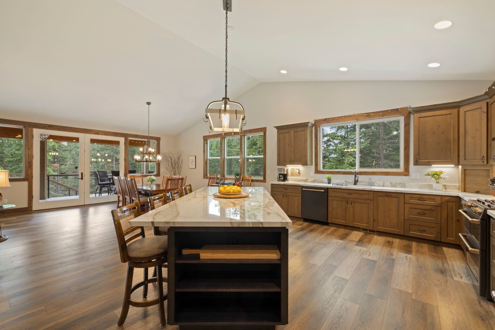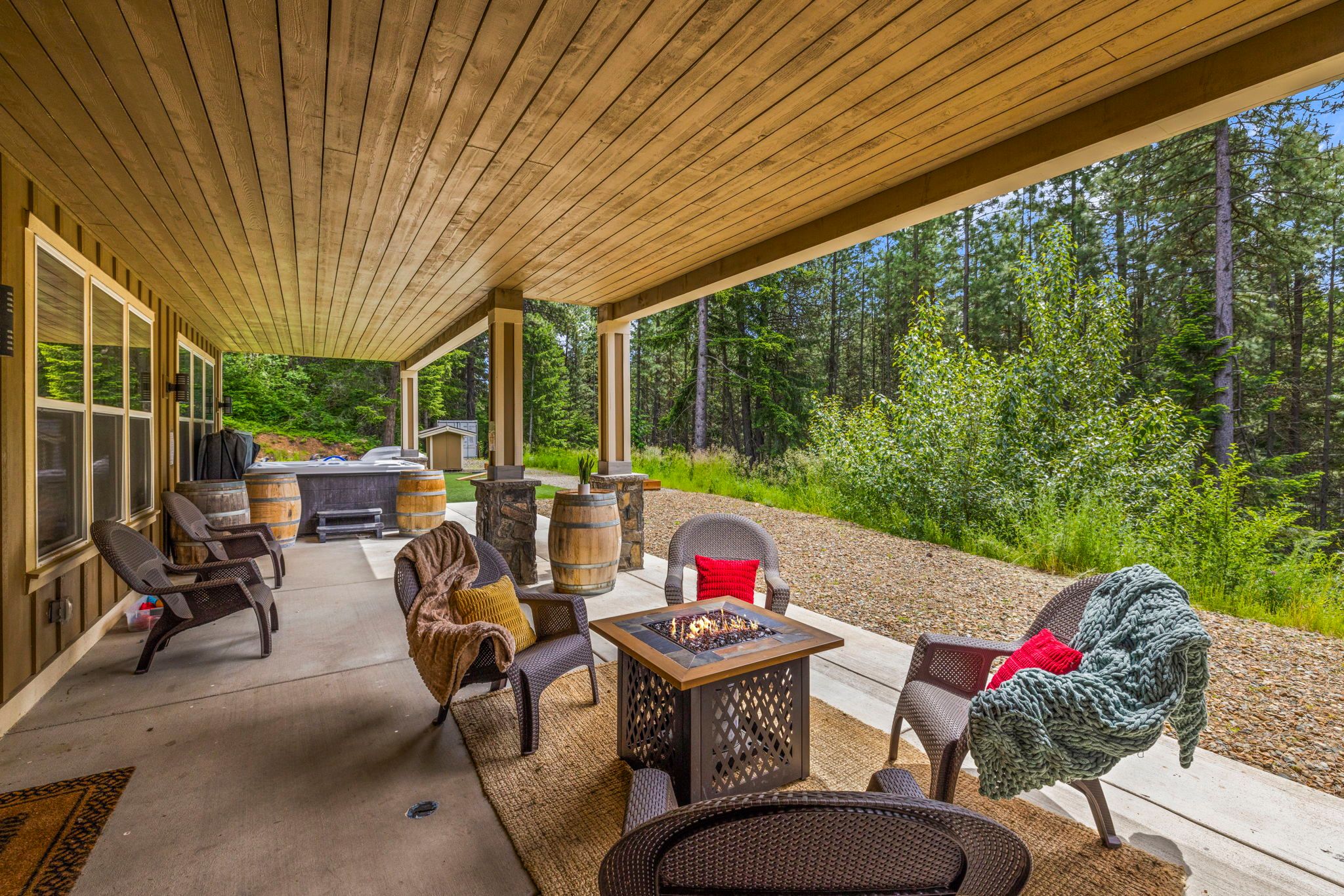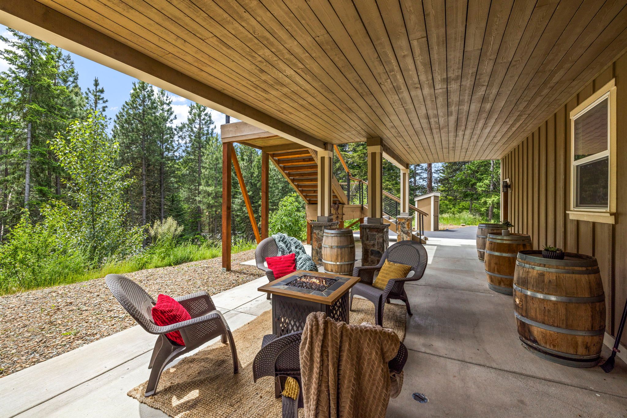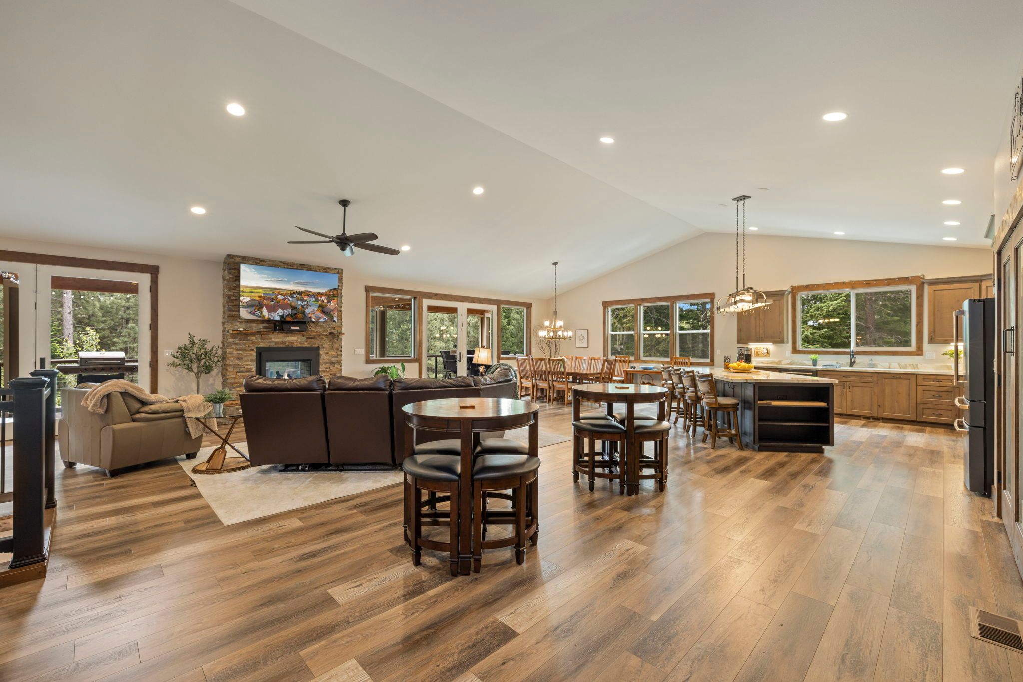 * Expansive Covered Deck, Amazing Views, Gas Fireplace, Sectional Couch, Fire Table w/ Seating for 6.