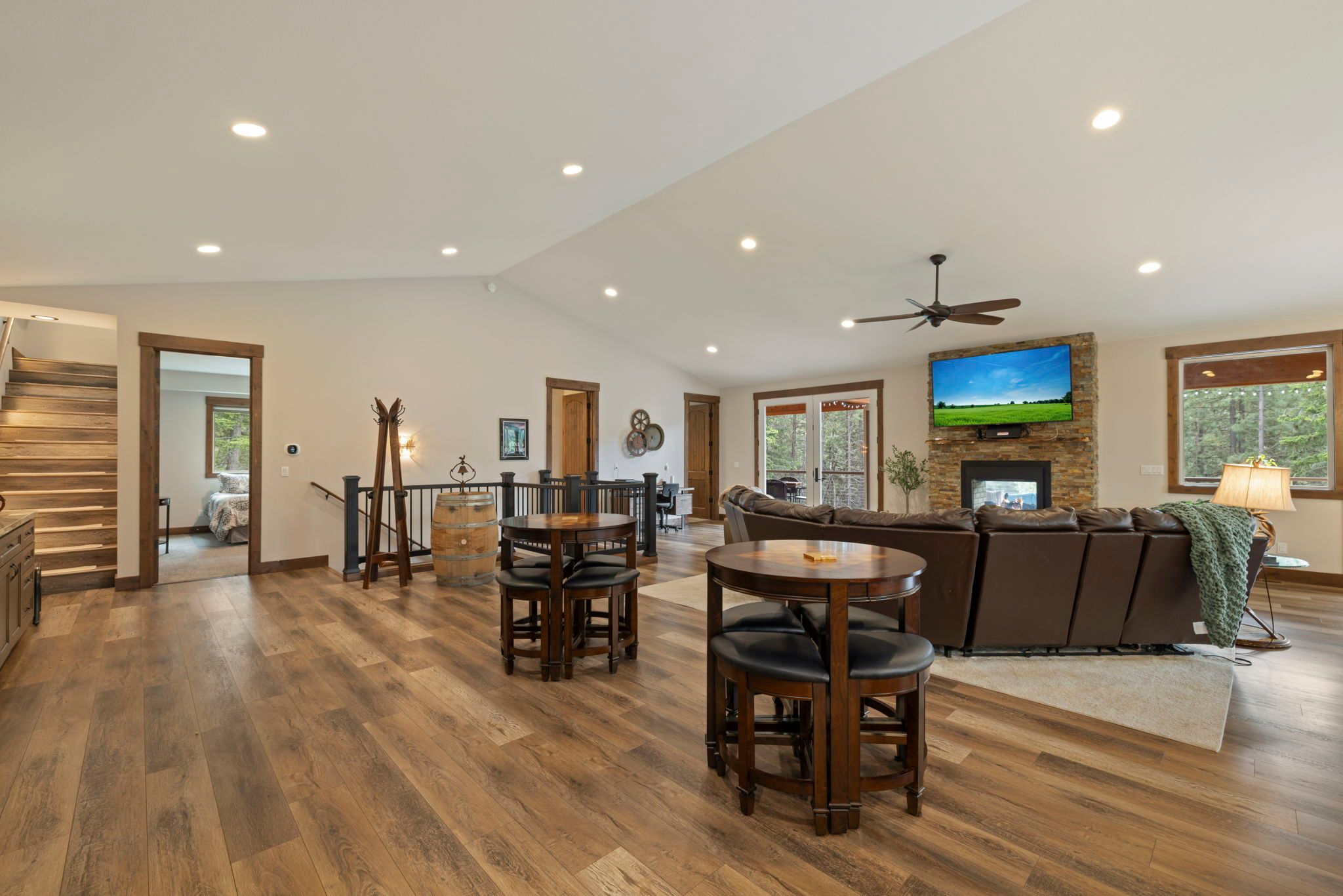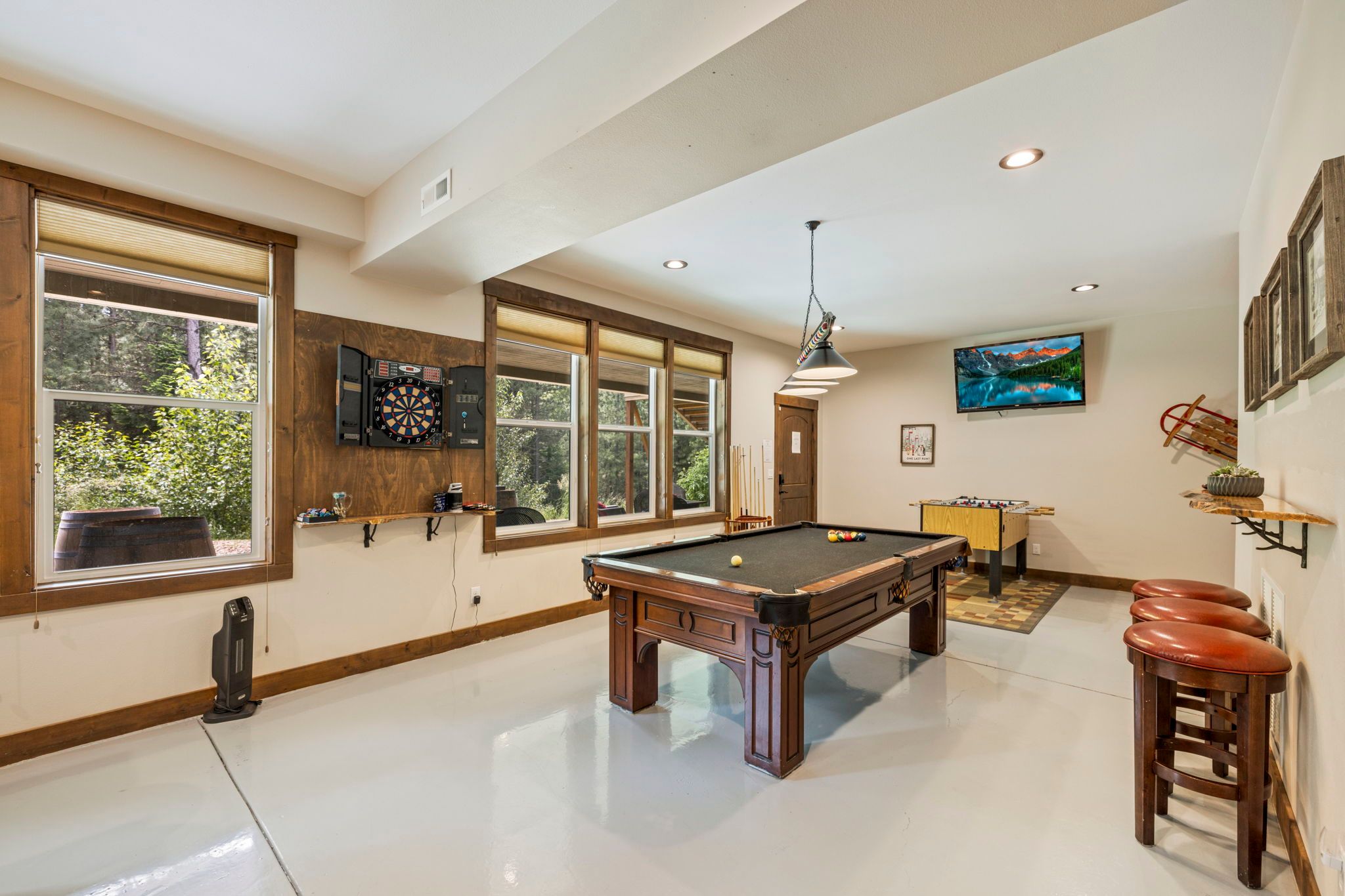 Escape to this spacious, pet-friendly retreat just 20 minutes from Snoqualmie Pass Ski Area and nestled by Sun Country Golf Course, only 6 miles from downtown Cle Elum. Perfect for gatherings, the home boasts a huge great room with a fully equipped kitchen, ideal for entertaining. Enjoy endless fun in the game room, complete with a pool table, ping pong, foosball, darts, and even an arcade Pac-Man machine. Step outside to relax on the expansive covered deck with stunning views, gas fireplace, and a cozy sectional, or unwind in the private 6-person hot tub and steam room. With 3 king-size suites, a bunkroom, and modern amenities like Starlink Wi-Fi, this home offers comfort and convenience. Just a short drive to Suncadia Resort, Speelyi Beach, and thrilling outdoor adventures, this property is the perfect getaway for every season!