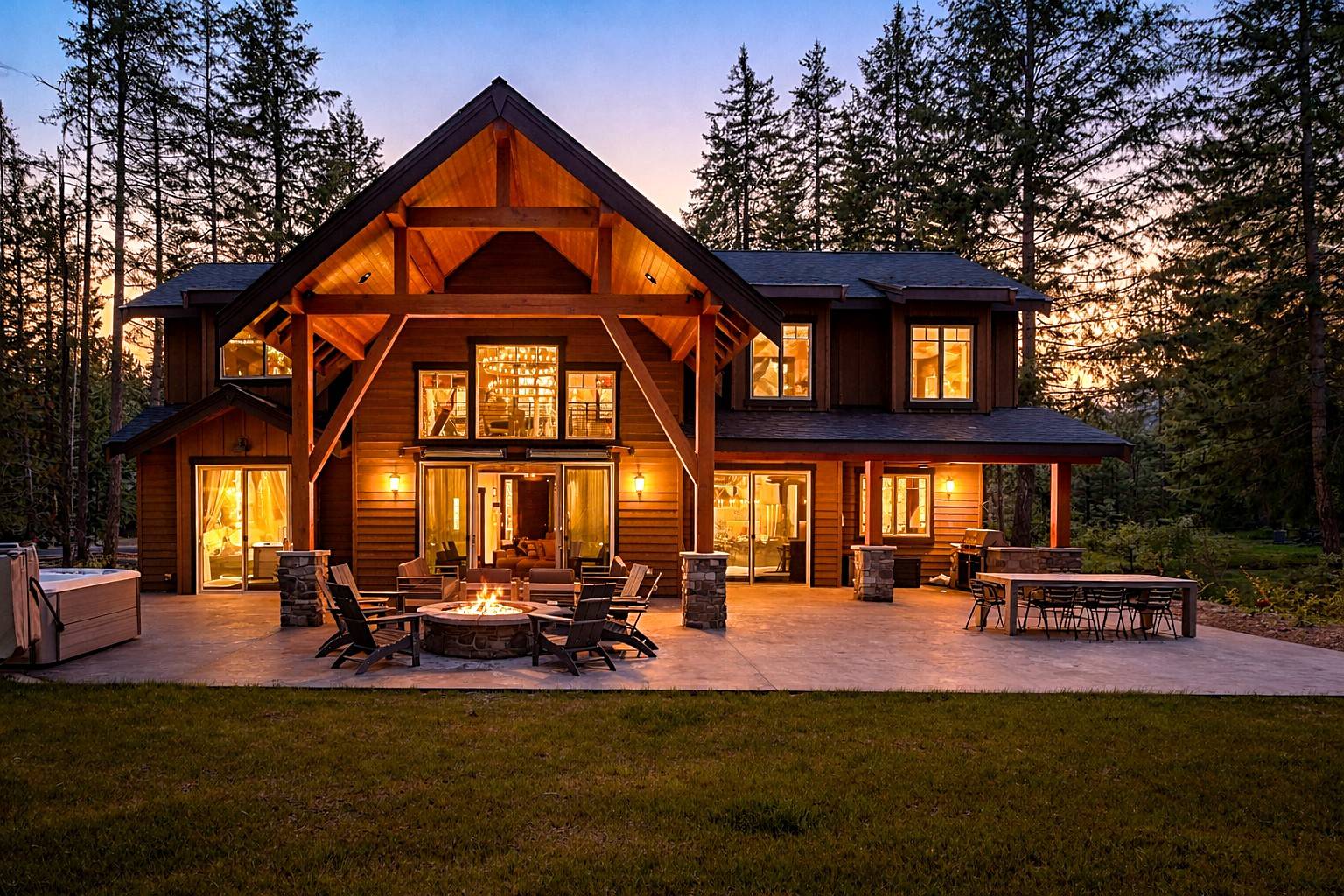 Outdoor Living – Covered Lounge Area + Cozy Chairs + Ambient Evening Lighting