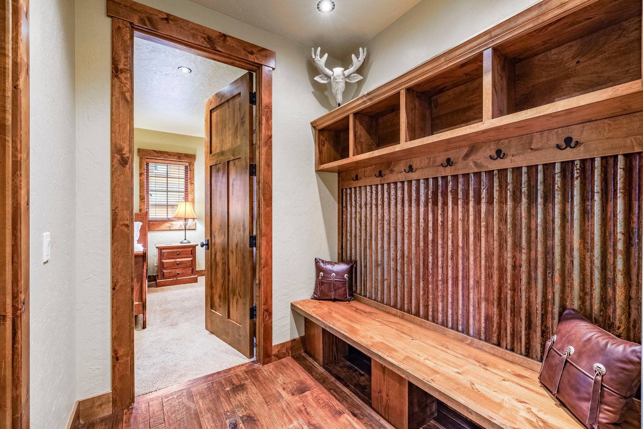 Gather around the soaring stone hearth in this richly layered, lodge-style great room.