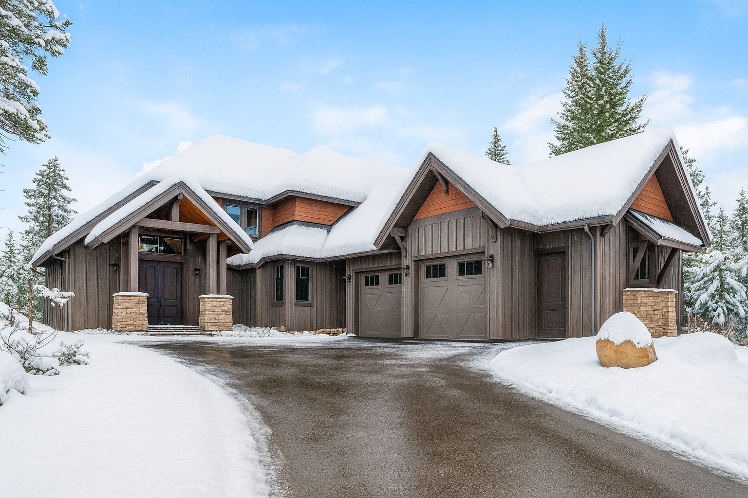 Mountain-modern masterpiece with stone accents and welcoming circular drive